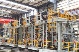 中冶賽迪牌坊式UMCD萬能軋機由一對水平輥和一對立輥組成封閉孔型,采用了高剛度牌坊式結構和先進的TCS控制系統,集成自動輥縫控制(AGC)與液壓位置控制(HPC),精確軋制H型鋼、鋼軌、礦用型鋼、鋼板樁等型鋼,可實現智慧化高精度萬能軋機應用,提高自動化水平,提升產品質量與生產效率。